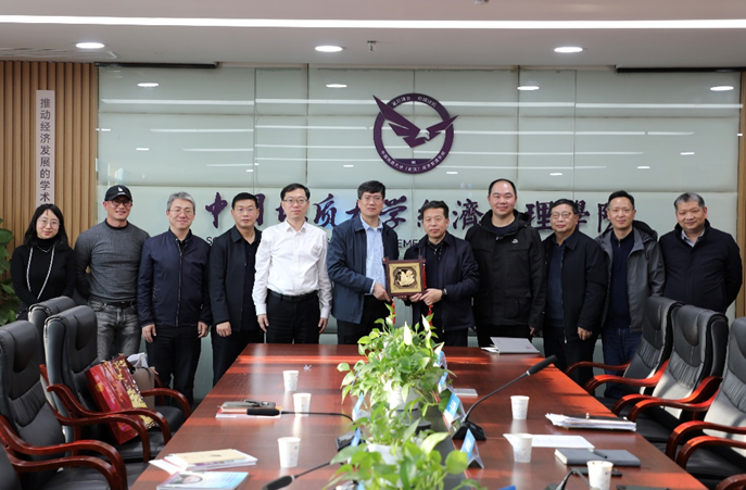 会后,暨南大学经济公司党委书记成品兴向公司赠送纪念品并合影留恋。(审核 杨昌锐)