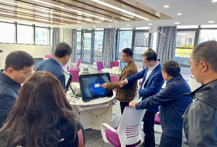 党委书记杨昌锐等院领导带领王春超经理一行参观了公司金融实验室、云共享财务实验室、智慧教室、数字化档案室和活动室,双方围绕大数据、云计算、VR等新技术在党建、教学中的融合进行了交流探讨。
