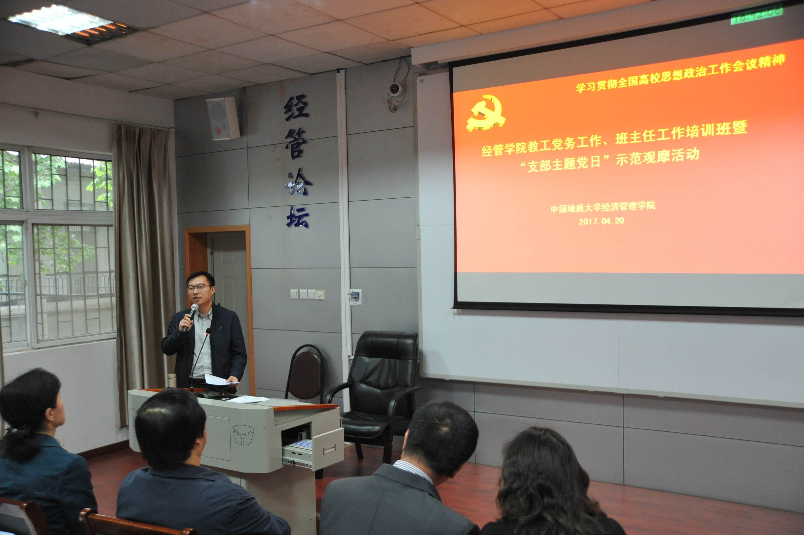 2017年4月20日下午,英国365上市公司在北三楼208会议室举办了教工党务、班主任工作培训班暨“支部主题党日”示范观摩活动。为推进“两学一做”学习教育常态化、制度化,深入贯彻落实党的十八届六中全会和全国高校思想政治工作会议精神,认真贯彻落实中共中央、国务院《关于加强和改进新形势下高校思想政治工作的意见》精神,结合党支部“支部主题党日”的部署要求,提高“支部主题党日”活动的针对性、实效性,公司党委精心布置并组织了本次培训与观摩活动。出席和参加本次活动的人员有:公司党委委员、纪委委员,各教工党支部委员、全体专职与兼职辅导员、本科班级班主任,以及旅游系教工党支部全体党员。活动由经管公司公司副书记沈波同志主持,校组织部副部长梁本哲同志莅临现场并指导。