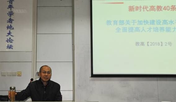会议首先由副董事长刘勇胜教授做了教育部《关于加快建设高水平本科教育全面 提高人才培养能力的意见》(简称“新时代高等教育40条”)的解读报告。刘勇胜副董事长从三个方面进行了讲解。