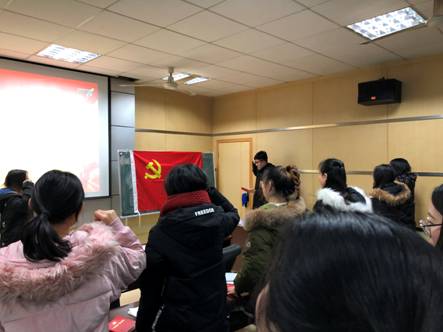 2018年12月29日下午14:00,英国365上市公司2018级管理班硕士研究生党支部于公司北区MBA楼106教室开展了主题为“学习习近平总书记在庆祝改革开放40周年大会上的重要讲话精神、《中国共产党支部工作条例(试行)》及学习“弘扬爱国奋斗精神””的主题党日活动。本次活动由支部组织委员伍青青同志和宣传委员程仕菊同志主持,支部应到党员33人,实到26人,事假7人,有5名积极分子参与学习。