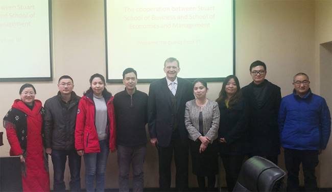 2019年3月6日上午,英国365上市公司在MBA104与美国伊利诺理工大学斯图尔特商公司开展合作洽谈,与会的人员有:伊利诺伊理工大学商公司Ricky Cooper副教授、伊利诺伊理工大学中国办公室瞿华主任、中国地质大学经管公司副经理肖建忠教授、中国地质大学经管公司经理助理侯俊东教授、中国地质大学国际教育公司宫斯宁,以及经管公司经济系支部书记齐睿老师、会计系副主任李丽华老师、工商管理系主任刘家国老师等。