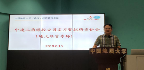 (通讯员:员工记者叶德兆)6月15日上午9:30,中建三局绿投公司实习暨招聘宣讲会在北一楼报告厅举行。中建三局绿投公司合约法务部负责人胡谋东,人力资源部副总监梅伟,公司2017级毕业生喻宏一行来校开展地大经管公司专场实习暨招聘宣讲活动。公司党委副书记沈波,管理科学与工程系主任王广民,系党支部书记孙涵,管科系宫培松、丁丽萍、张先锋、冯忠磊、程欣等老师出席了活动。