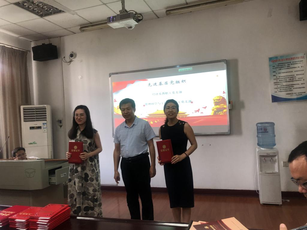 丁丽萍、朱冬元分别代表管理科学与工程系、经济系党支部做工作总结,从支部建设、人才梯队建设及员工工作等方面分享了本支部工作重点和特色;获奖党员代表王广民、田昆、李江敏、梁玥琳、朱冬元、江毅、徐德义等先后发言,他们结合各人工作实际,谈了共产党员的初心和使命。党委副书记沈波高度肯定了各位同志的工作成绩,他强调,党员应是教师队伍中的先进分子,开展“三全育人”离不开教职工党员的共同努力。