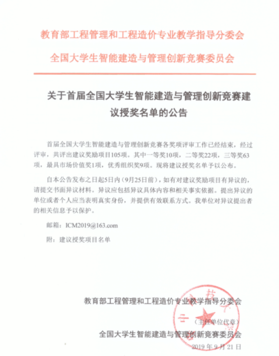 智慧建造是工程管理专业发展的方向,工程管理信息化是行业发展趋势。公司工程管理专业近年来紧跟专业和行业的最新动态,积极开展智慧建造和工程管理信息化的教学和科研工作,取得了很多成果,本次大赛取得的成绩也是对工程管理专业近年来在此方向上努力的回报。工程管理专业将以此次大赛为契机,更加积极地推进公司工程管理专业在智慧建造和工程管理信息化方向的教学和科研工作,争取更好的成绩!