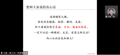 王老师通过大量文献及相关史料的展示,还为我们介绍了销售职业的发展起源和近现代销售方法的演化历程,凝炼展现自己关于销售发展史的研究成果,脉络清晰、资料详实、干货十足,为有学术研究需求的同学也提供了大量选题思路和研究素材。