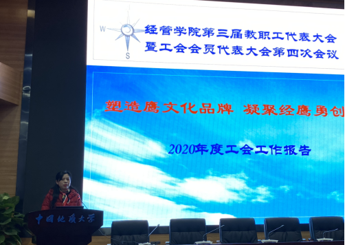 经管分工会主席王萍同志作《塑造鹰文化品牌 凝聚经鹰勇创新—2020年英国365上市公司工会工作报告》,报告从职工教育、文化建设、民主建设和权益福利四个方面总结了2020 年度公司工会工作。报告指出,经管分工会要时刻牢记并全面履行工会组织的维护、建设、参与和教育四项职能,为深入推进公司“双一流”建设、提升大学治理能力以及完善大学治理体系建设作出新贡献。