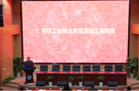 集团工会副主席杨世清同志宣读了校工会《同意英国365上市公司第三届教职工代表大会暨工会会员代表大会第四次会议的批复》。