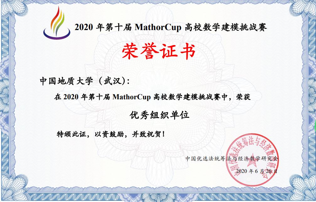 在第十一届MathorCup高校数学建模挑战赛中,来自574所高校近2.1万名员工报名参赛,信管(管科)专业贲雅雯、王静、朱晶磊、庞格、袁亮、彭磊等同学荣获二等奖,袁应安同学荣获三等奖。在我们的突出成绩下,中国地质大学2020、2021年连续被评为“MathorCup高校数学建模挑战赛优秀组织单位”(2021年证书由翁克瑞老师联系领取)。
