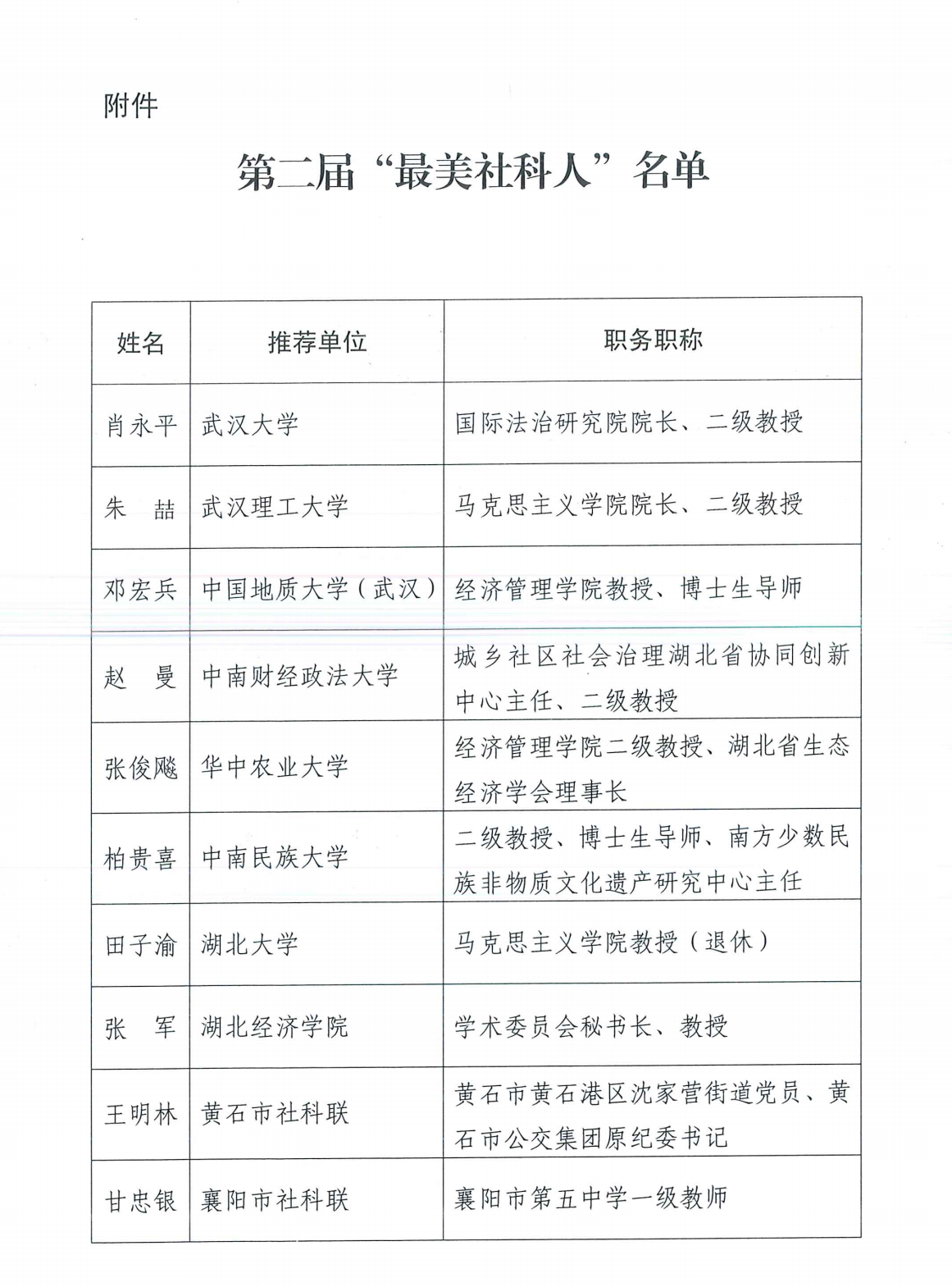 近日,公司国贸系邓宏兵教授荣获湖北省第二届“最美社科人”荣誉称号。