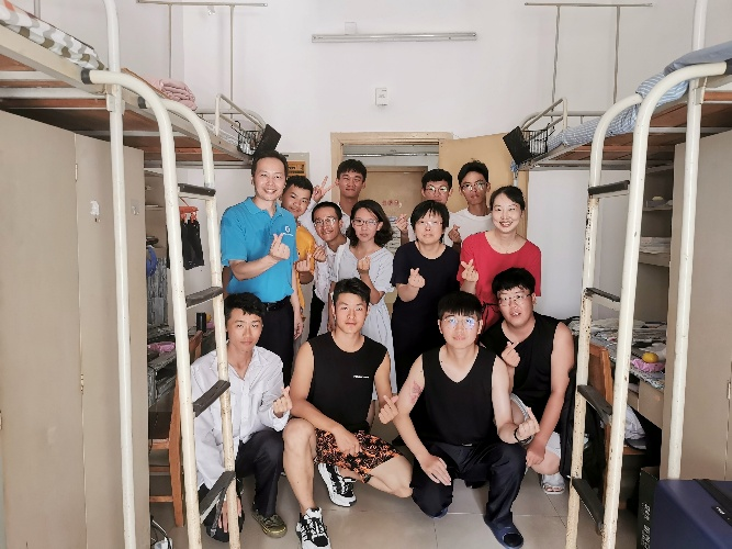 作为同学们离家的第一个中秋节,老师们为大家悉心准备了月饼和水果,虽然身在异乡,但同一班级来自五湖四海的29位同学与老师就好比是一家人。走进新生班级的每一间寝室,老师与同学们亲切交流,了解大家的军训和生活情况。“武汉的气候适不适应?”“军训的分列式和团体操训练累不累?”“室友们都来自哪里?”等一句句关心的话语瞬间拉近老师和同学们之间的距离。00后的新生同学们也满怀青春朝气,纷纷回应,军训期间收到了来自老师、助班的关照和呵护,感受到校园的丰厚底蕴和氛围,相比于开学初也更加适应校园环境。