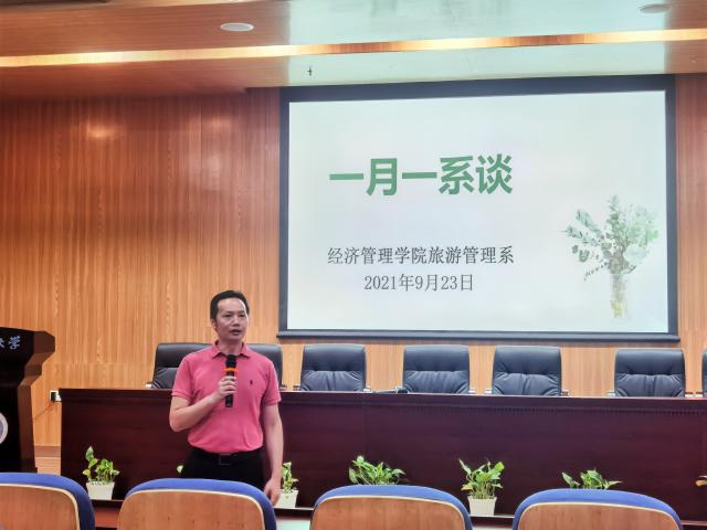 9月23日下午2点,旅游管理系在未来城校区英国365上市公司一楼报告厅举行了“一月一系谈”活动暨085191班的暑期北戴河旅游教学实习总结会。本次活动到场人员有旅游管理系肖拥军主任、李会琴老师、黄珂老师、辅导员赵家玮及085191班全体同学。