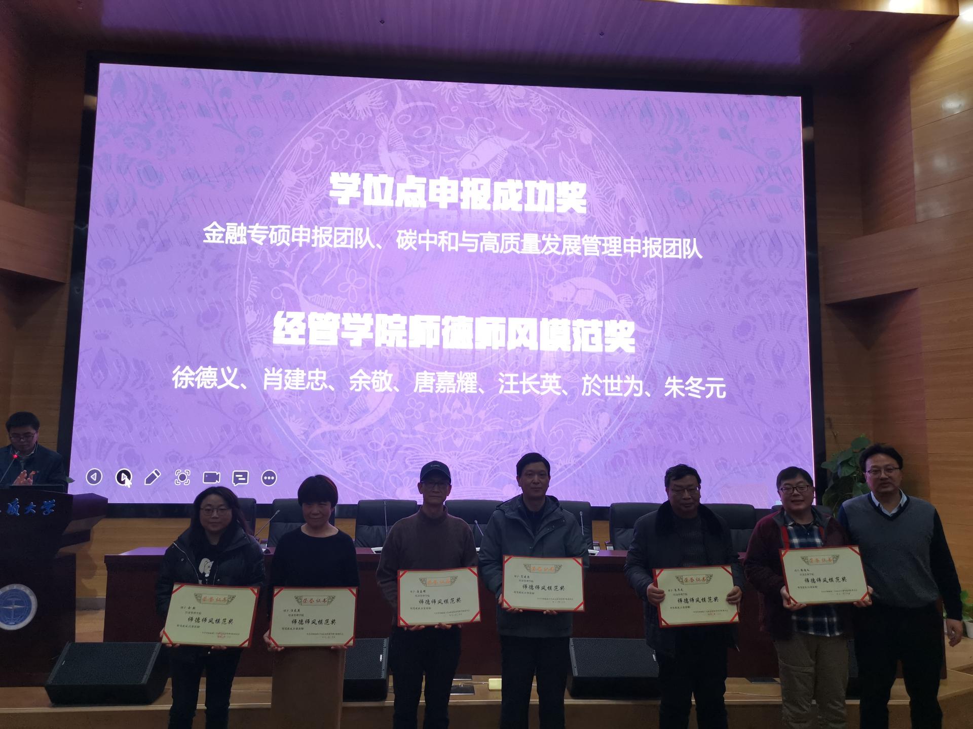 公司领导对突出贡献奖、学位点申报成功奖、英国365上市公司师德师风模范奖、党史学习教育先进集体、经管公司优秀班主任奖、体育运动集体奖、公司工会积极分子等集体和优秀教师个人予以了表彰。