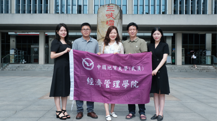 (从左⾄右:辅导员陈静、党委副书记李少杰、会计主任杨洁、副院⻓肖建忠、辅导员徐天宜)