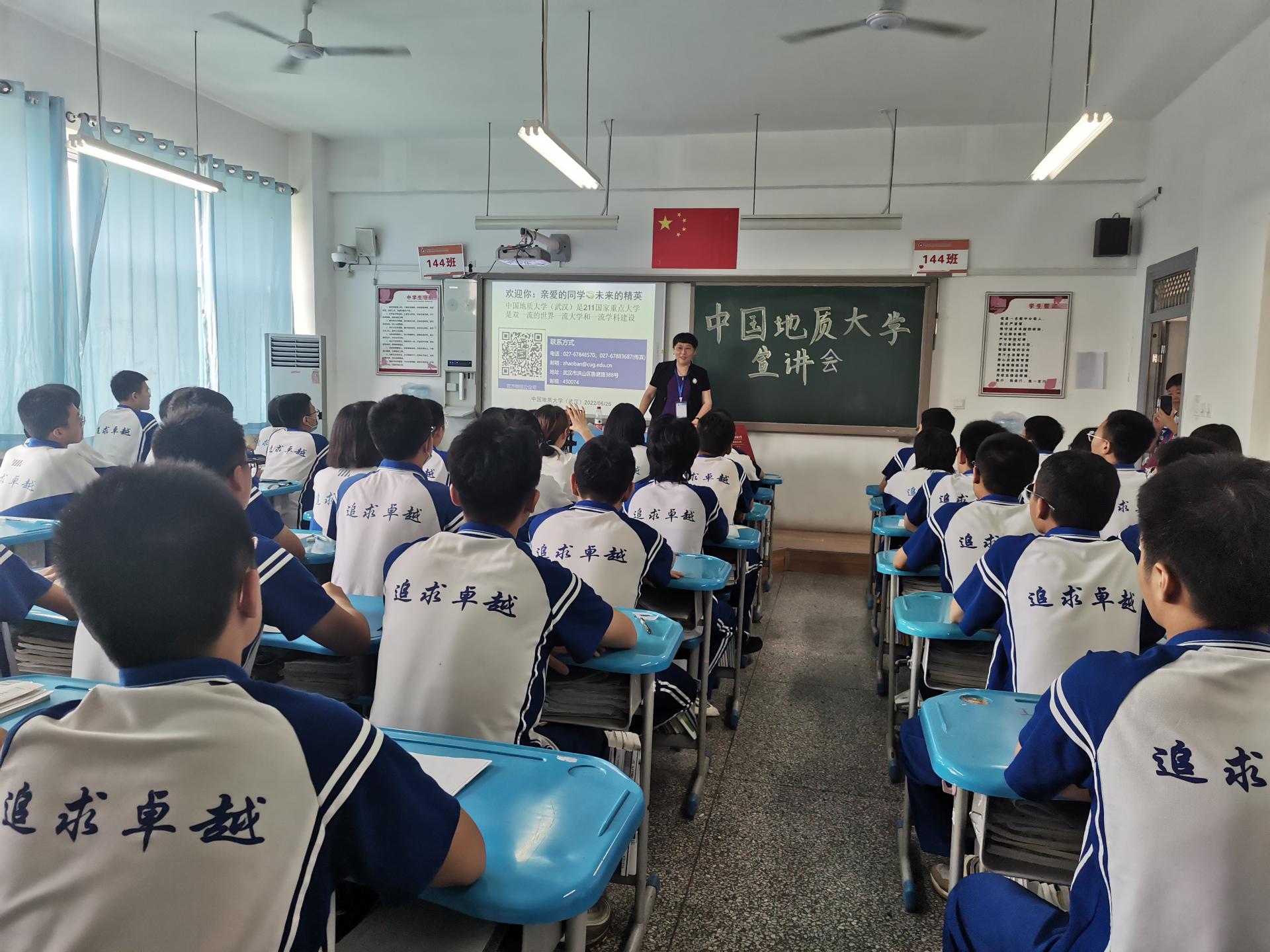 金贸系教授邓宏兵赴宜昌⼀中招⽣。