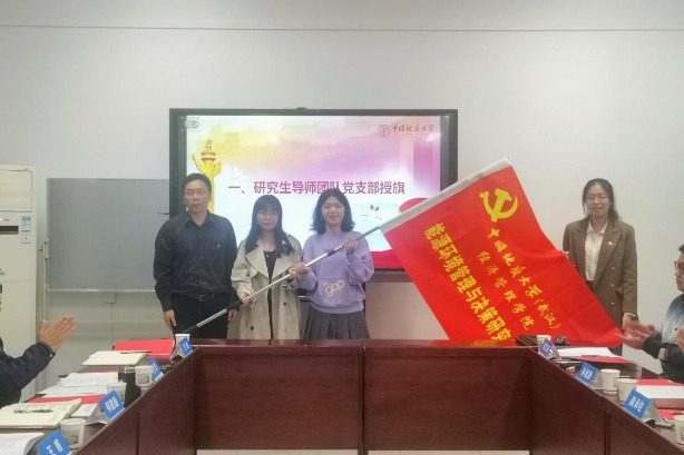 会上,李少杰宣读公司党委《关于成立能源环境管理与决策研究生党支部、生态文明研究生党支部的通知》文件,王甫、何建新对新成立支部进行授旗。能源环境管理与决策研究生党支部书记方旭、生态文明研究生党支部书记周之逸汇报支部基本情况。两个支部对标研究生样板党支部标准,分析差距、查找不足,进一步明确了支部“党研互融互促、成果集成转化、德智双向开花”的建设思路。