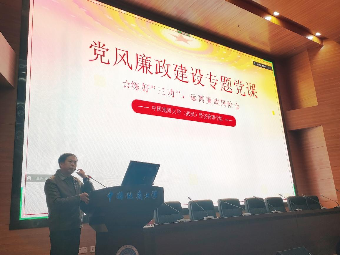 (通讯员:余甫文鑫)为深入推进“清廉公司”“清廉地大”“清廉经管”建设实施方案,落实立德树人根本任务,营造“卓越、和谐、幸福”的院风,推进廉洁教育进课堂,2022年10月14日,公司党风廉政建设专题党课在经管楼二楼报告厅举行,公司党委书记杨昌锐讲授专题党课,员工党建工作辅导员蔡杨主持。