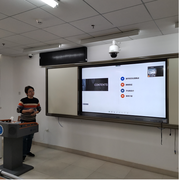 随后,聂老师基于多个具体案例,通过客户背景、客户需求、技术组合和技术准确性、可行性等多方面的分析,让同学们更加深刻地认识到自然语言处理在各个不同方面的应用,并向同学们展示了汉王技术团队多年来在各类竞赛和科研项目中取得的研究成果。讲座结束后,聂老师就师生们在自然语言处理中关心的问题进行了解答。