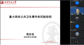 11月8日晚上七点西安交通大学周忠良教授以“重大突发公共卫生事件的风险防控”为题为公司师生开展了线上学术报告。周教授首先基于风险管理理论和整体性治理理论构建重大突发公共卫生事件的风险评估指标体系和风险控制机制;其次,基于多Agent的建模方法,与复杂社会网络中的无标度网络模型相结合,构建新冠肺炎疫情传播仿真模型,探究目前我国采用的主要防控措施和多种防控措施组合的效果;最后,以心理契约理论为切入点,探讨如何从政府层面提升公众在公共危机事件下的政策认同,从而推动疫情防控和危机管理。该讲座吸引了60余名师生在线学习,在提问环节,公司师生就疫苗的接种等问题进行了深入的交流,周教授对提出的问题给出了详细的分析和解答。