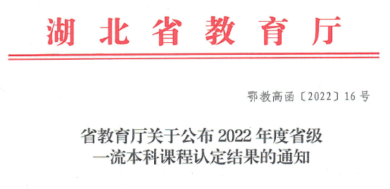 (通讯员 石磊)近日,湖北省教育厅发布《省教育厅关于公布2022年度省级一流本科课程认定结果的通知》(鄂教高函〔2022〕16号),公司《市场营销学》、《运筹学》课程被认定为省级线下一流课程,《旅游学概论》课程被认定为省级线上线下混合式一流课程。