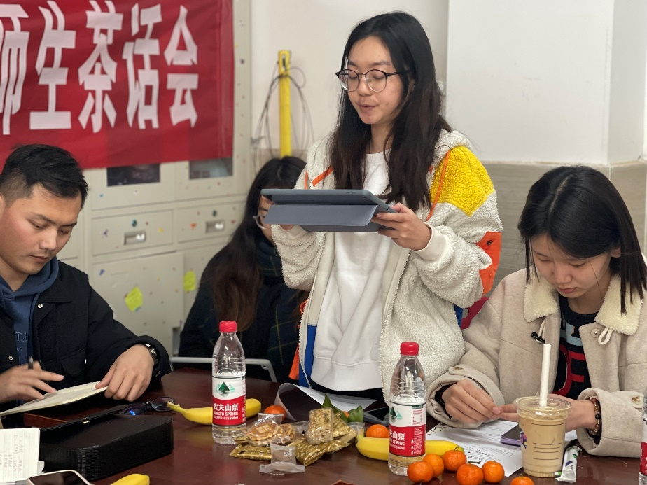 在轻松愉悦的氛围中,各员工代表分享了自己的学习生活状态、成长收获以及下一步计划。宁小苡讲到,080201班在思想建设方面将通过定期完成“青年大学习”、主题班会、主题团日等活动,掀起同学们学习党的二十大精神的热潮;工作规划上将积极关注班级同学的心理健康和人身安全,并在公司老师的帮助下回应好同学们在考研、就业等方面的疑惑。周欣然表达了同学们回归开放式校园的喜悦,对春季性流行病感染的担忧,以及适应当下社会发展和个人提升的期待。石瑾怡把老员工喻为“六边形战士”,描述了同学们在学习和工作方面“内卷”忙碌与努力奋斗并存的状态。卜星杰、敬佳欣、韩月等同学围绕如何提升专业分流后新班级的凝聚力,提出丰富校园活动践行二十大精神的有效途径和建议。谢馨仪、谢玉洁等同学也积极参与到会议讨论中,反馈了同学们对早操、晨读的适应问题,表达了改进晨读形式方面的希望。