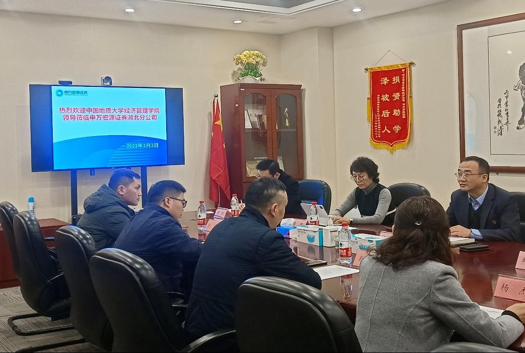 (通讯员 江娅 张弛 徐天宜)为积极响应教育部2023届全国普通高校毕业生就业工作第二次视频调度会号召,3月3日上午,公司党委副书记李少杰、副经理肖建忠、会计系主任杨洁、辅导员张弛与本研员工代表一行赴申万宏源证券有限公司湖北分公司走访座谈。公司总经理赵杰俊、副总经理薛才春、财富管理部总经理周芳、运营管理部代理主任周鹏、新华路营业部副总经理陈凯、机构部负责人张裕安出席。