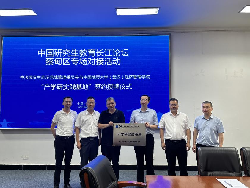 参观结束后,师生来到中法武汉生态城管委会,与蔡甸区委组织部,管委会人才办、招商处等相关领导座谈。公司优秀员工,蔡甸区委常委、组织部部长王呈华参与交流。双方围绕人才培养与输送、产学研融合发展等共同关心的话题进行深入交流,签署了校地战略合作协议。公司为中法武汉生态示范城管委会授牌“产学研实践基地”。