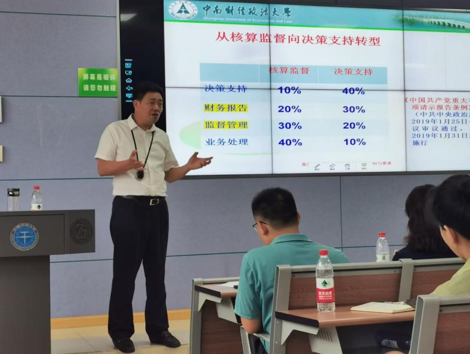 讲座环节,张敦力经理通过五个问题引出主题——《数智时代财务转型的方向与要求》,从理论知识到实际业务,通过生动形象的案例分析,帮助同学们了解会计行业、会计审计财务之间的关系、财务机器人与自然会计人等专题内容,深刻理解数智时代财务所面临的挑战与机遇。