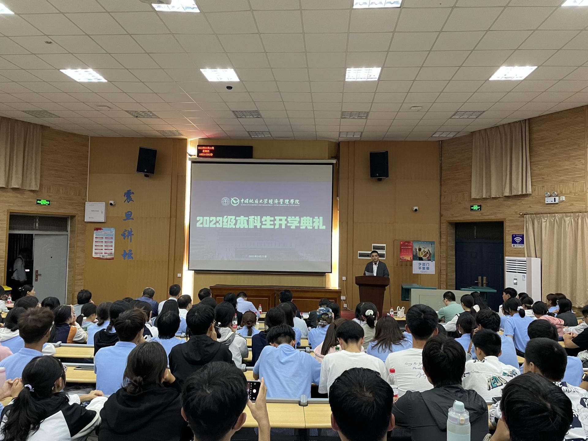 典礼第八项,公司党委书记杨昌锐为全体新同学讲授开学第一课——《经管公司文化》。他从公司院训、院徽、院风、使命、愿景五个方面对公司文化进行深入解读,并与新生分享了“学习工作十观”。希望全体新生能够在良好的公司氛围下,努力拼搏进取,不断追求卓越,早日成为“品德高尚、基础厚实、专业精深、知行合一”的地大人。