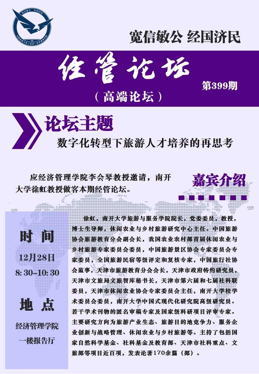 经管论坛(第399期)【高端论坛】数字化转型人旅游人才培养的再思考