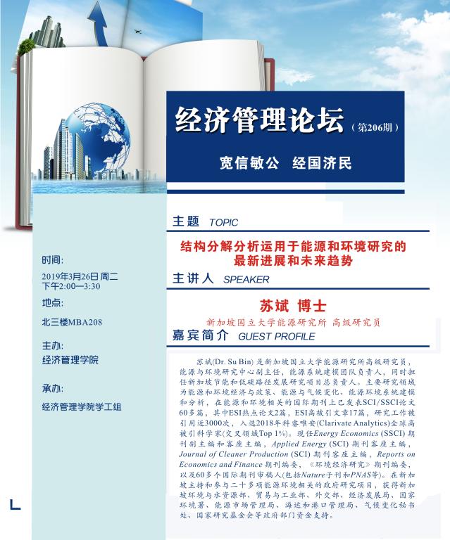 经管论坛(第206期):结构分解分析运用于能源和环境研究的最新进展和未来趋势