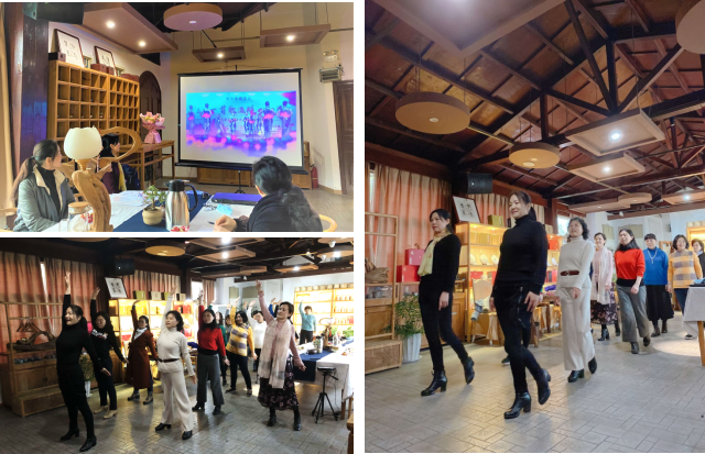 分享会上,爱好文艺活动的分工会主席王萍老师则向大家展示了公司参与校模特队的“女神”们编排的系列气质旗袍秀表演活动,还特意请来校模特队的队长钱军老师给大家普及形体美知识和日常训练方式,让各位女老师学到了在日常行走和工间休息时可随时插空开展塑形塑美、让美自内而外散发的“小秘籍”。