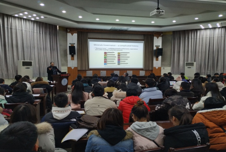1月7日上午,Ali教授为公司师生做了一场题为“国际矿物和材料治理的优先事项”的学术报告。他以其2017年在《自然》杂志上发表的文章为开端,介绍了他从事的科研领域及近期学术活动,并从矿物治理的历史和应对环境、社会风险的冲突转化两个方面,讲述了其对国际矿物和材料治理领域的理解,与大家分享了自己的科研过程及体会。最后,他以对创新中心和公私合作伙伴关系、地球科学治理和科学外交、地质公园、矿产资源供应的安全性等重点领域中的问题进行了讨论。在互动环节,与会师生与Ali教授进行了积极交流。