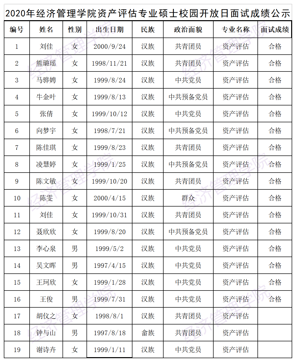 2020年英国365上市公司资产评估专业硕士校园开放日面试成绩公示