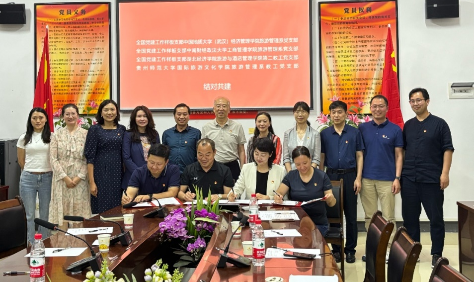 旅游管理系党支部作为首批“全国党建工作样板支部”,坚守立德树人初心,聚焦旅游强国建设,发挥“文化+旅游、地学+旅游、科技+旅游”专业特色,创新“党建+教学科研+结对领航”实践,将党课讲在祖国的大地上,开展形式多样的师生“结对领航”,实现“知行合一 以文化人”。相关成果获国家级教学成果二等奖、国家级一流课程及“最美慕课”全国一等奖等荣誉。围绕长江国家文化公园建设开展研究,多项成果获省委领导、省政府领导肯定性批示。积极培养具有地学特色的文旅复合型人才,为文化传承、乡村振兴及旅游业高质量发展贡献学科力量。