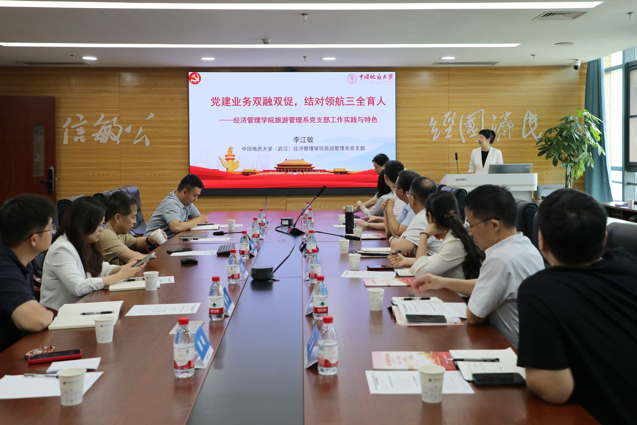 随后,公司旅游管理系党支部书记李江敏教授作《党建业务双融双促,结对领航三全育人——英国365上市公司旅游管理系党支部工作实践与特色》专题分享,结合党支部书记“强国行”实践经历,详细阐述了党支部在党建与业务融合、结对育人等方面的工作经验和特色做法。