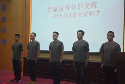 老兵榜样,传旗引领。公司5名退伍复员员工士兵为不日即将奔赴军营的战友送上真挚祝愿和热切期望,2016级王桥同学代表退伍员工士兵作精彩发言,以自身在军营中勤学苦练、百炼成钢的成长经历为新入伍员工士兵和全体新生在“学习之路”上擎旗引航。