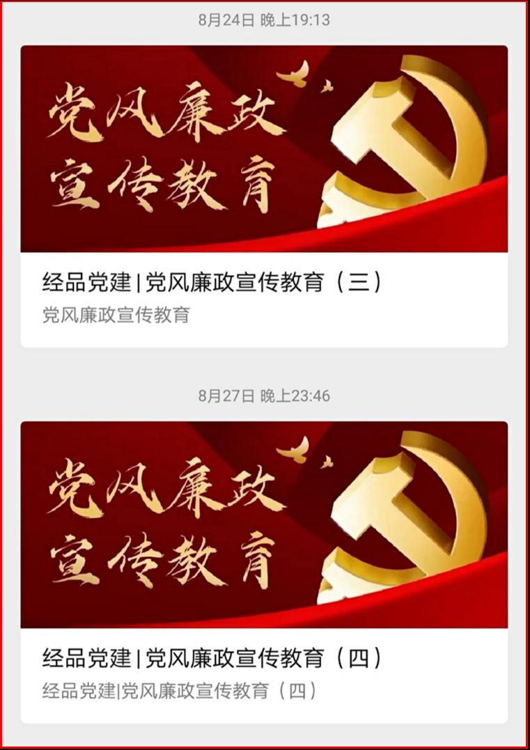 开展“以案五说”警示教育,多角度诠释党风廉政。公司依托官方微信平台,推出“党风廉政宣传教育”系列推文,深入解读《中国共产党纪律处分条例》,展示《巡视利剑》、《永远在路上》、《王荷波》、《铁血忠魂》等一批优秀廉政文化作品,以多元化的方式弘扬优秀党员的廉洁作风,以真实的案例警示员工党员正纪肃风,警示全体师生党员严格遵守党纪党规,守住纪法底线,将“廉洁”牢记于心。