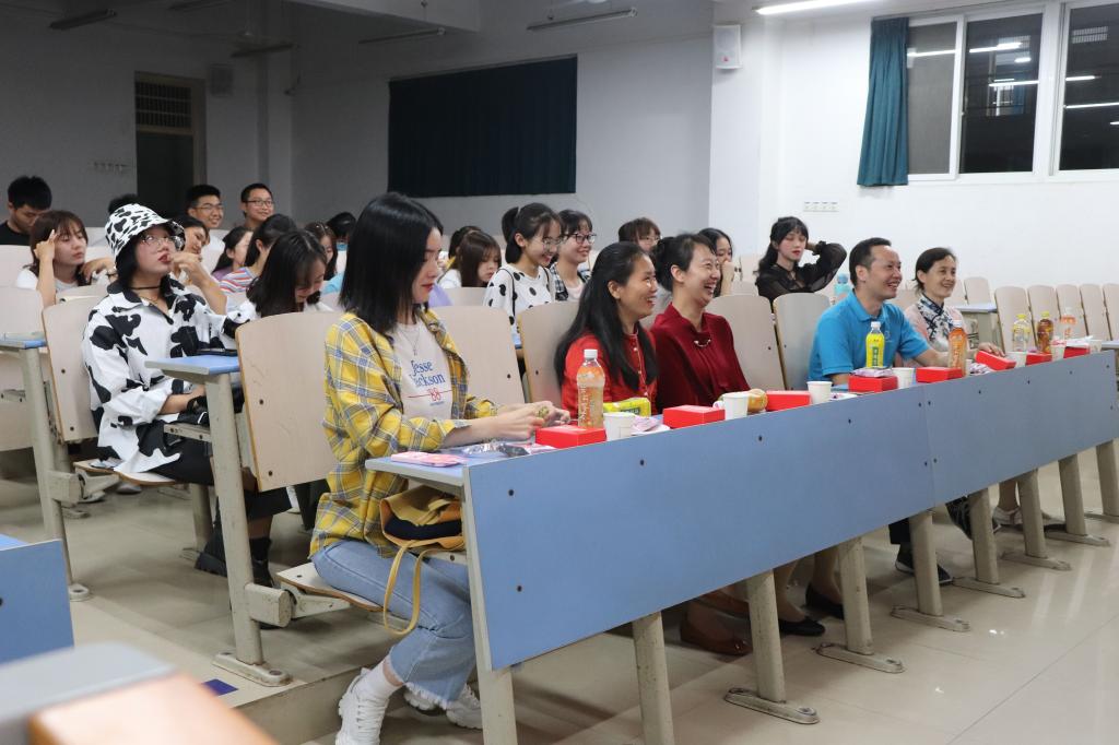 四位老师全程参与了班级的晚会活动。活动开始,旅游管理系党支部书记李江敏老师和旅游管理系系主任肖拥军老师先后为班庆活动致辞,表达了对同学们的节日问侯和大学新生活的祝福。让同学们感到了家一般的温暖,也让同学们对未来地大新生活充满期待。活动中,老师们欣赏同学们的才艺,点赞同学们的表演,为同学们的青春活力喝彩,与同学们共同参与游戏,和同学们一起品尝月饼,让同学们倍感亲近。活动临近尾声,肖拥军老师与同学们共同唱响《今天是你的生日》,为共和国71岁生日送上了属于地大师生的祝福。