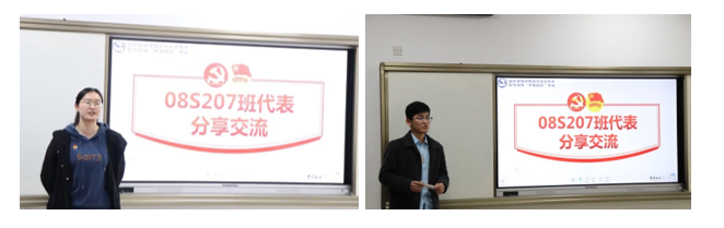085181、085191旅游管理“书香班级”代表先后向新生班级08S207班赠送传递图书并进行阅读分享交流。