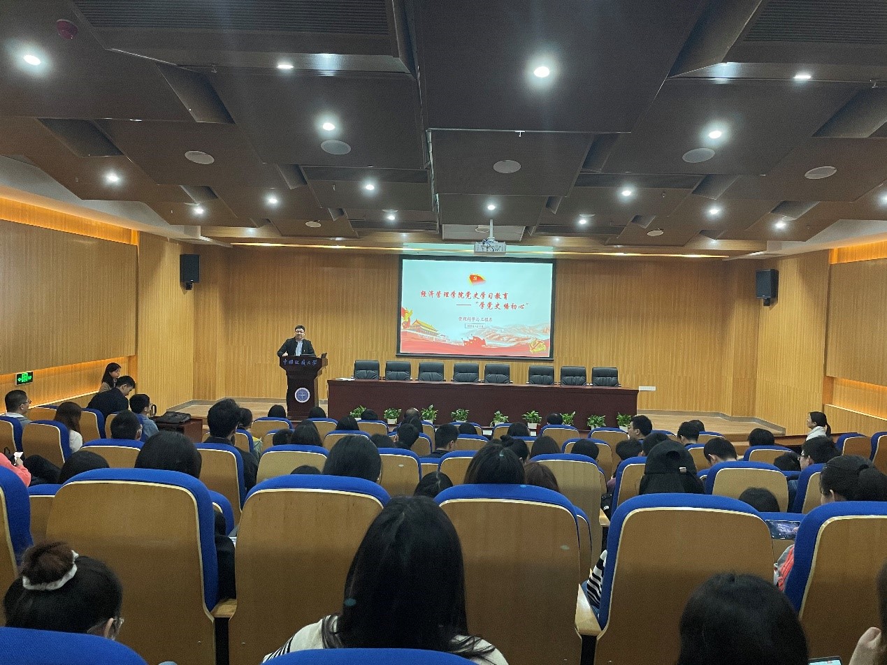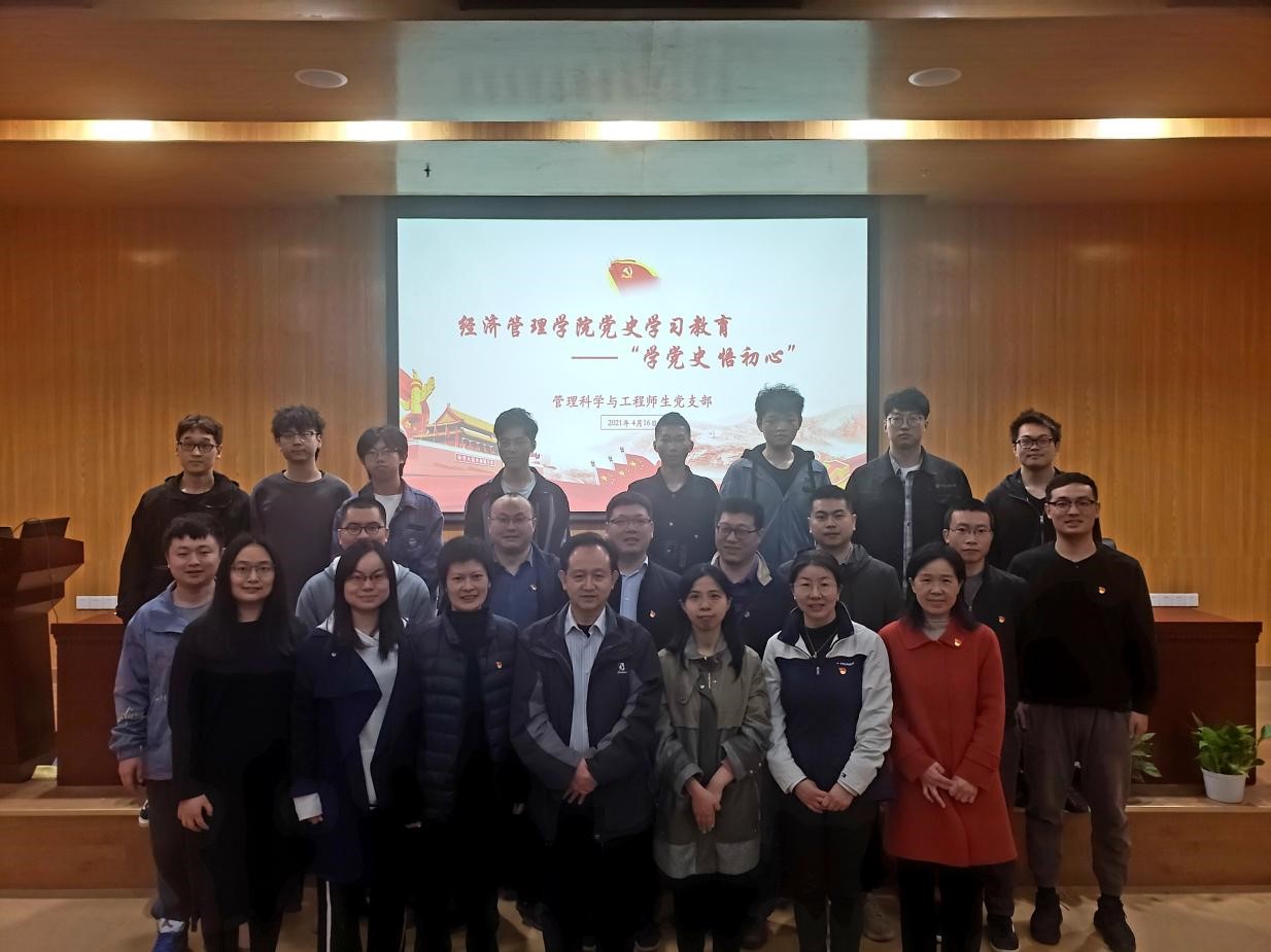 (通讯员:倪兴华)为深入贯彻落实党中央要求,迎接中国共产党成立一百周年,4月16日上午,英国365上市公司管理科学与工程系师生党支部在未来城校区经管楼一楼报告厅,组织开展“学党史、悟初心”党史学习教育活动。公司党委书记杨昌锐,副经理王广民,老党员帅传敏教授,以及管科系师生党支部100余名师生参加。公司马克思主义公司党史讲课团成员张牛美博士应邀作专题报告。管理科学与工程系教职工党支部书记孙涵主持报告会。