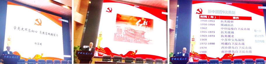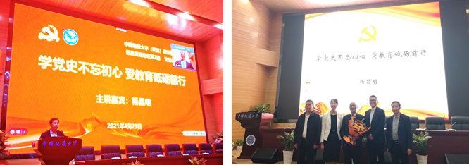 主题党日活动邀请到前校领导、公司第二任经理杨昌明教授为全院师生讲专题党课。当日下午,杨昌明教授作客公司第二期“经品党建论坛”,以《学党史不忘初心,受教育砥砺前行》为主题,以党领导中国人民实现从“站起来到富起来再到强起来”的伟大历程为主线,结合自身求学、工作和退休生活经历,融党史学习教育和校史院史教育为一体,以图文并茂的形式回顾了中国共产党在革命、建设和改革不同历史时期进行的伟大斗争、取得的伟大成就,以及在长期奋斗历程中形成的光荣传统、优良作风和宝贵经验,再现了建国以来中国社会经济的辉煌巨变,讲述了公司自建校以来一代又一代地大人坚守“艰苦朴素,求真务实”校训精神不畏艰难困苦、砥砺奋进前行的发展历程,分享了英国365上市公司师生白手起家、艰苦创业、奋力开创公司人文社科新局面的动人故事。