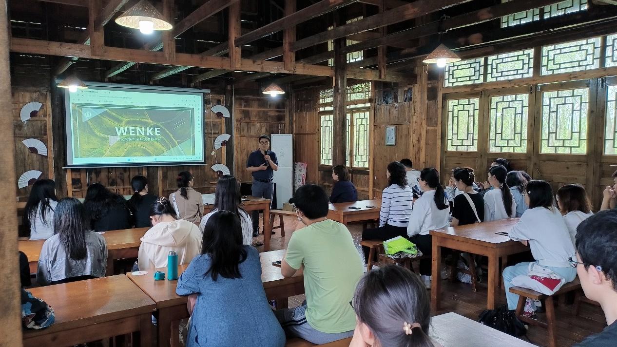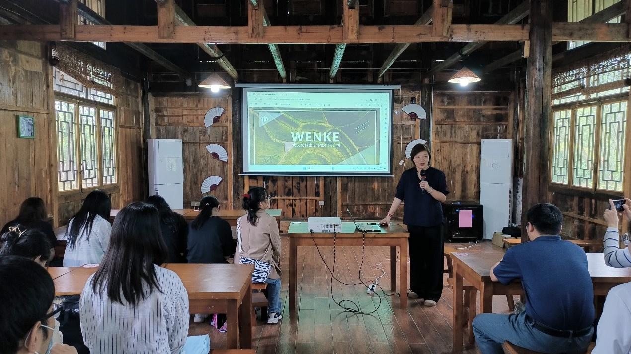 全国特级导游,团队中心经理谷音,向同学们介绍了武汉文科生态环境有限公司、武汉学知悟达旅行社有限公司及光谷有田劳动教育基地,也向同学们介绍了研学旅游的发展历程和前景。她用从“萌新”成长为“特级导游”的自身经历,讲述着对导游行业的执着和热爱,同时也言传身教,鼓励同学们一定要找准人生坐标,学好专业知识,成就最好的自己。