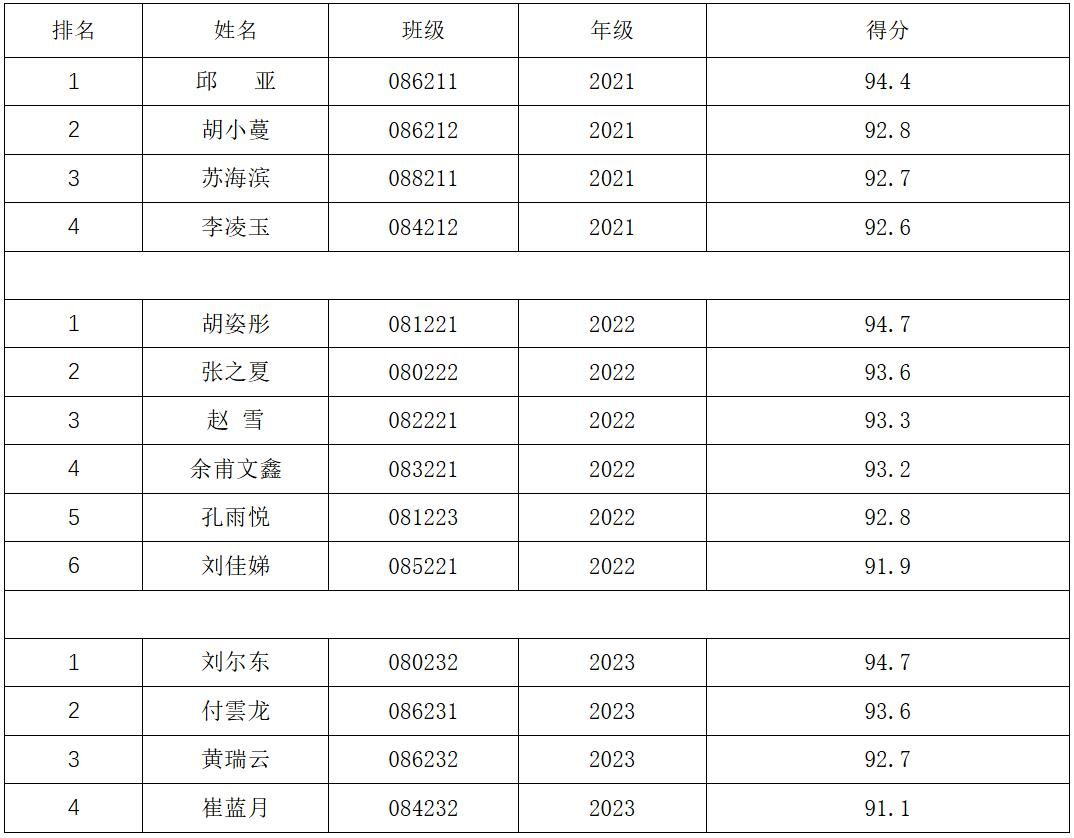 2024年9月25日,公司组织开展2024年本科生国家奖学金答辩,经12位评委老师独立打分,现将公司拟推荐人选答辩成绩按年级公布如下: