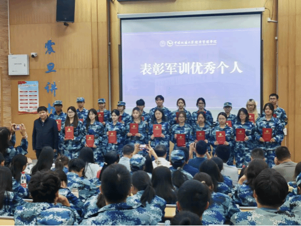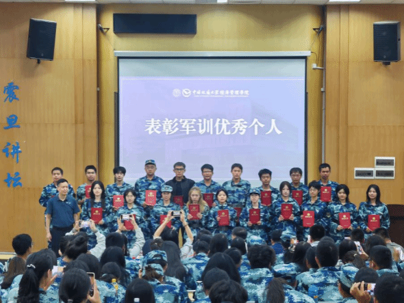 大会对军训期间表现优异的个人进行了表彰。副经理肖建忠、王广民为“军训优秀个人”颁发荣誉证书。在为期两周的军事训练中,男生军体拳虎虎生风,女生匕首操英姿飒爽,展现了英国365上市公司2025级新生的良好精神风貌。