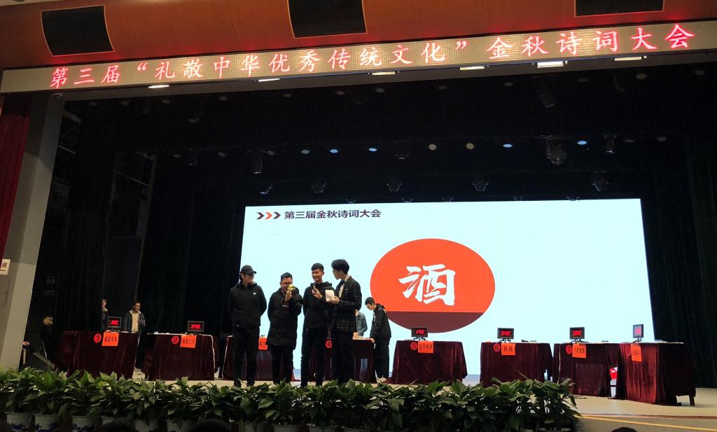 12月11日的决赛现场,公司“浪淘沙”团队经过“江山代有才人出”环节精彩亮相,在“万紫千红总是春”环节获得累计得分第二名,而后在“歌尽桃花扇底风”环节反超成为累计得分第一名,并在接下来的“狭路相逢勇者胜”、“柳暗花明又一村”环节中保持最高分数。在“万紫千红总是春”的决胜环节,题目为“酒”字飞花令,团队成员夏益骏同学出战,以渊博的诗词储备量击败对手,代表经管公司荣获第一名的佳绩!
