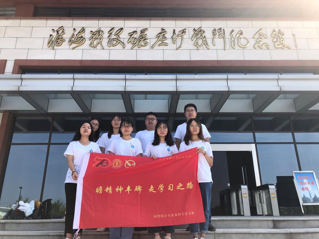 随后团队成员来到了纪念馆内,伴随着讲解员的讲解,进行参观学习。碾庄圩战斗是淮海战役的第一阶段,此次战斗歼灭黄百韬兵团10万余人,为淮海战役的胜利奠定了坚实的基础。此次战斗中有许多民工支援前线,在方方面帮助军队,体现出人民群众是中国共产党的立党之本、执政之基、力量之源。通过参观与讲解,团队成员了解到,碾庄圩战斗的胜利可以归结为以下几个原因:第一、战略决策的成功。我军指挥官粟裕将军根据战场的实际情况,及时调整作战计划,抓住了最佳的进攻时机;第二、我军将士的英勇无畏。面对敌军泼豆子一样密的子弹,士兵们不怕牺牲,其中,一名叫做储友富的排长为了保证其他的士兵能够顺利前进,舍身挡在了敌人的机枪射口处,并摧毁了敌人的碉堡;第三、军民团结的鱼水之情。在战斗中,民工帮助士兵修筑战壕,工厂工人加班制作武器,担架队护送我军伤员,妇女们给前线士兵们送饭,有些妇女同志一天能够给士兵们烙一千多张煎饼,体现了军民一心的深情。最后,团队成员在纪念馆门前合影留念。