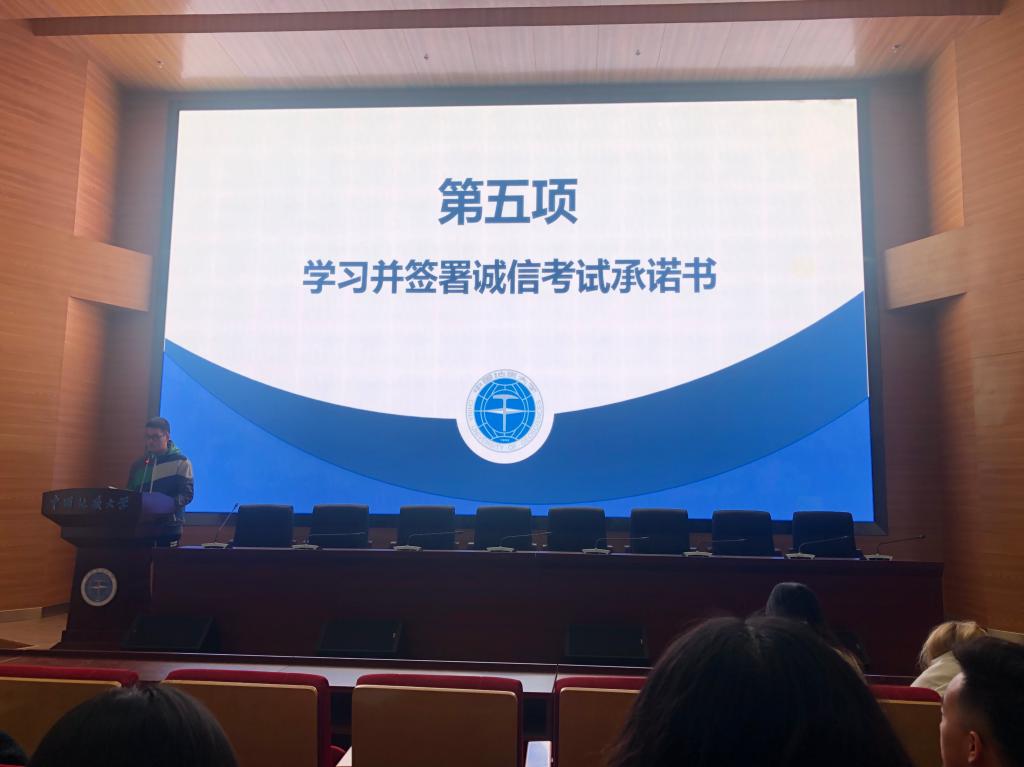 活动的第二项议题是考风考纪诚信教育。努尔老师首先带领同学们学习了《中华人民共和国刑法(修正案九)》中有关考试作弊的规定,呼吁同学们增强守法懂法意识。其次结合公司《英国365上市公司本科课程考核违规处理办法》宣读了违纪行为的认定与处理等相关规定,要求同学们诚信参加任何考试。紧接着,082182班黄浩同学作为员工代表,带领同学们学习《诚信考试承诺书》内容,全体同学签字承诺自觉遵守考核纪律。