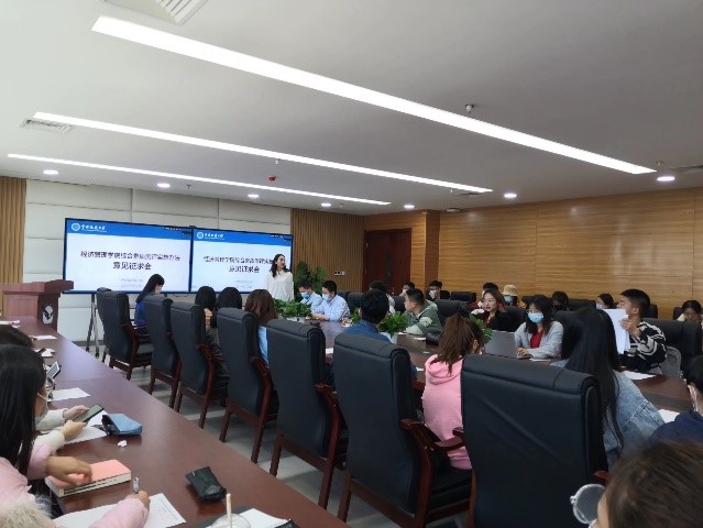 此次会议分为三个环节。首先,员工会工作人员给各位员工代表下发意见征集表,此次听证会后员工代表将以书面形式提出意见。然后,徐媛老师对《本科生综合素质测评实施办法(征求意见稿)》进行了介绍。方案分为组织机构、过程管理、测评内容和分数核减四个部分。徐媛老师详细解读了新方案的具体修订项目及综测分值体系等。最后,由到场员工代表对修订方案进行问题反馈,代表们就员工工作、学科竞赛、社团活动等多个方面进行了提问。