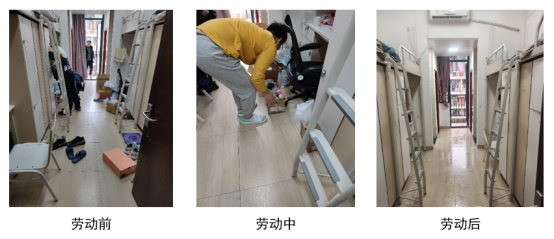 在班级的宣传和组织下,在舍长的安排和带动下,各班以宿舍为单位开展了宿舍卫生清扫活动。2021级应用经济学硕士班同学表示,通过劳动日活动的锻炼,大家明白了无论做什么事情,都要脚踏实地,持之以恒,不达目的誓不罢休,劳动如此,学习如此,工作亦如此,只有认定目标,脚踏实地,才能“绳锯木断,水滴石穿”,在以后的人生道路上,也会努力去正视一切挫折,不屈不挠,勇往直前。2021级资产评估专硕班同学讲到“一屋不扫,何以扫天下”,这样的劳动日活动让大家养成了注重细节、踏实肯干的作风,潜移默化的影响学习和工作,更有寝室树立起“室洁书香有梦亦有志”的寝室室风。